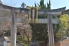 鳥居から境内へと続く階段の山桜は、花は小ぶりながら霞みがかかったような美しさ