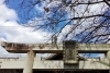 境内の太鼓橋の上にかかる桜の枝