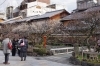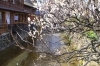 2月初旬 趣きのある町並みに梅の枝はよく似合います。梅の花が白川にかかるのは、まだまだ先のようです